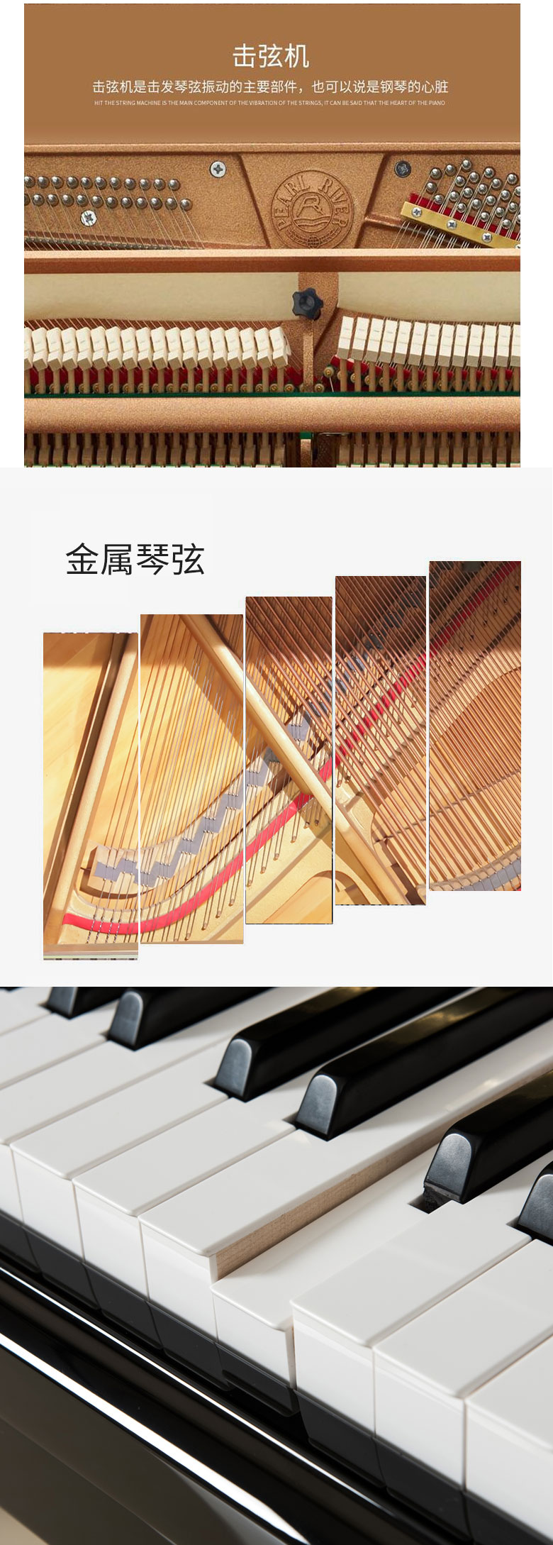 外殼選用特殊處理中纖板芯,穩(wěn)定性和耐久性更強;飾以優(yōu)質(zhì)涂料,更顯傳統(tǒng)華貴。 制作工藝精良,主題邊緣弧面裝飾,獨具時代氣息。 傳統(tǒng)的鋼琴制作工藝與現(xiàn)代科技結(jié)合的精湛工藝,音色與外觀更具人性化。